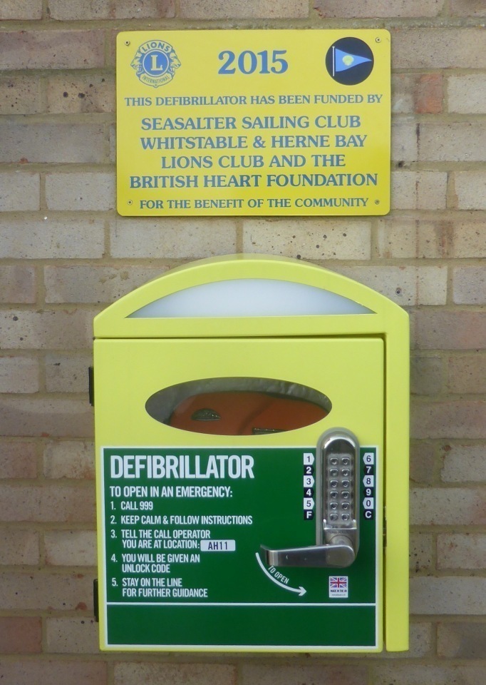 The sad early death of one its members, Tim Seymour, from a heart attack whilst sailing in 2011 inspired the club to focus on doing more to prevent a similar incident occurring. After a 4 year battle researching the correct equipment and obtaining funding, this culminated in the purchase of the AED with the support of funding from the club, the Whitstable and Herne Bay Lions and the British heart Foundation.